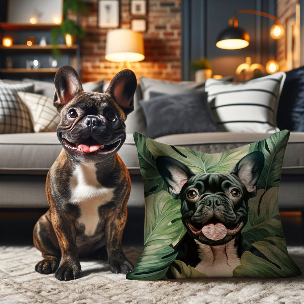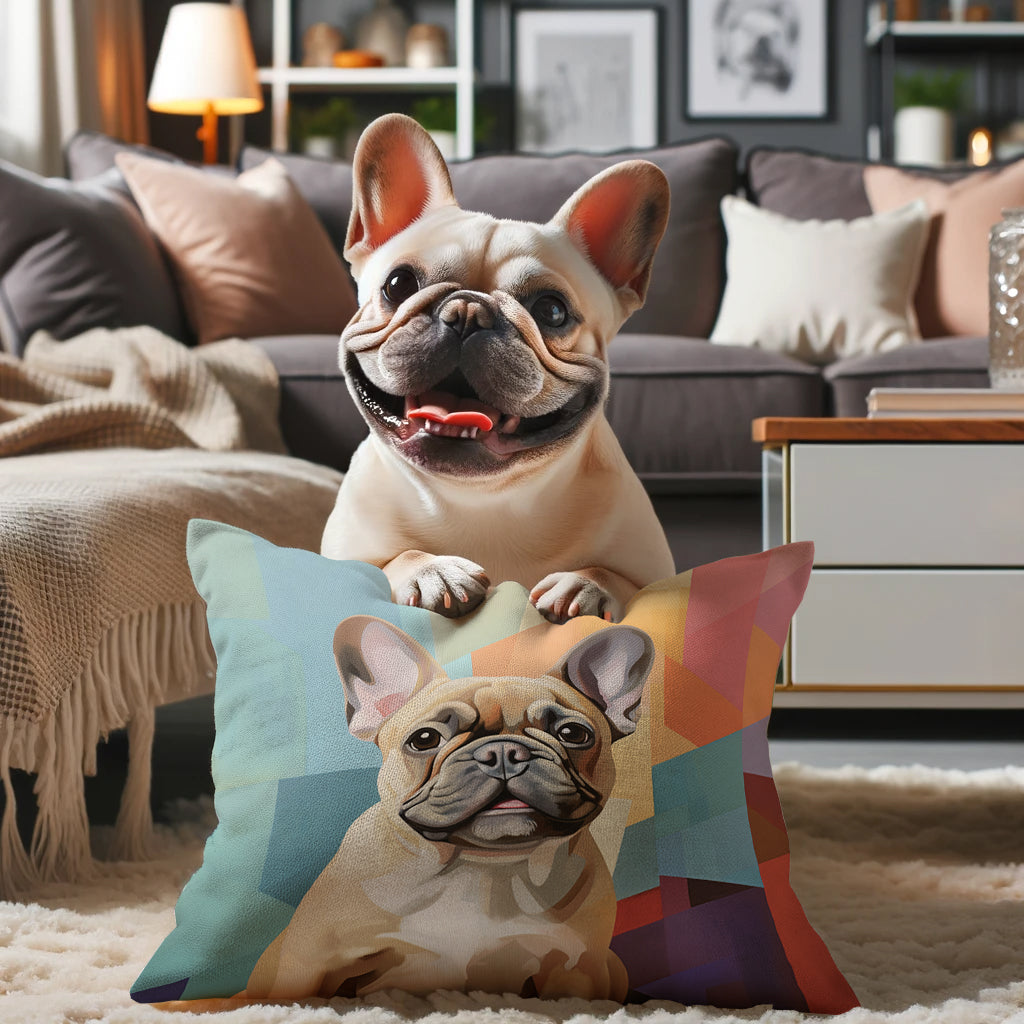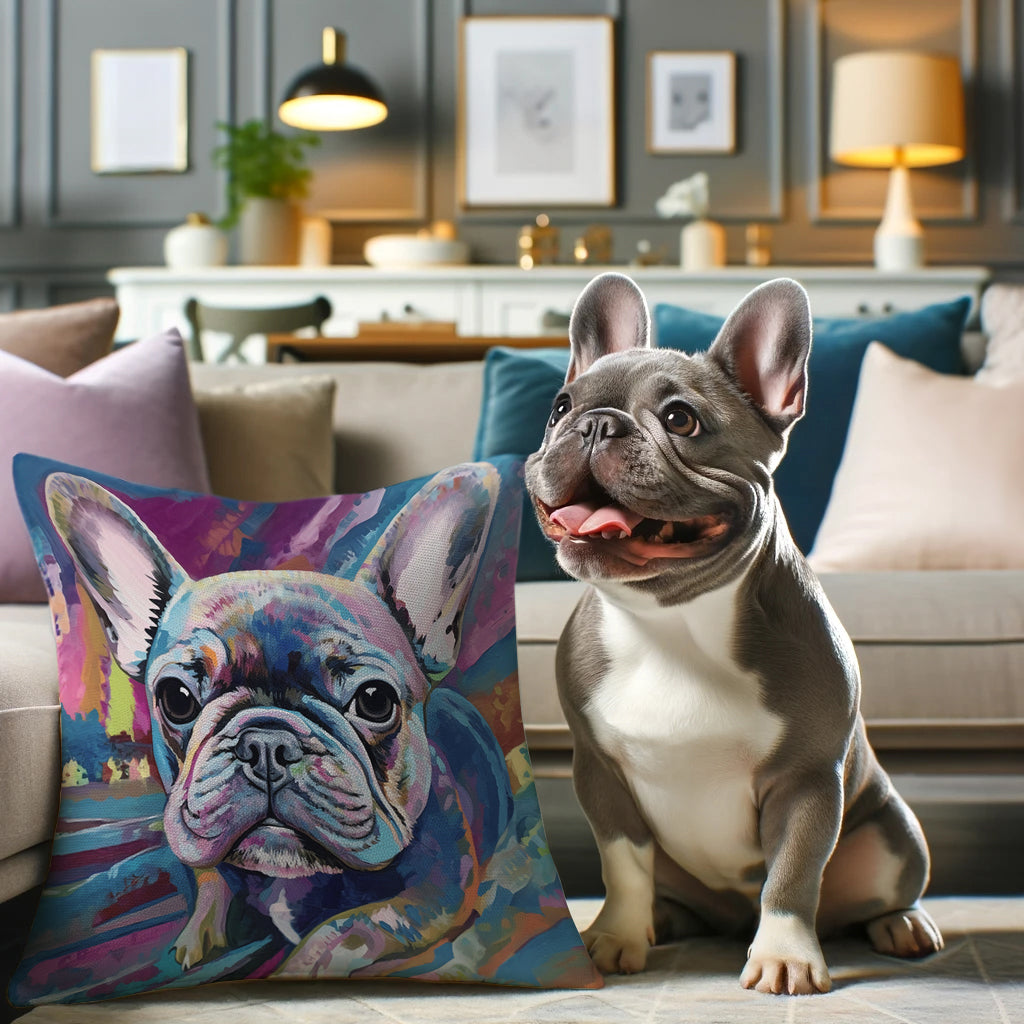 Transform your living space with our exclusive French Bulldog pillow artworks, blending comfort with a touch of modern elegance.