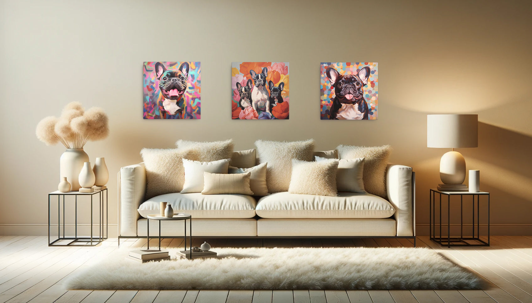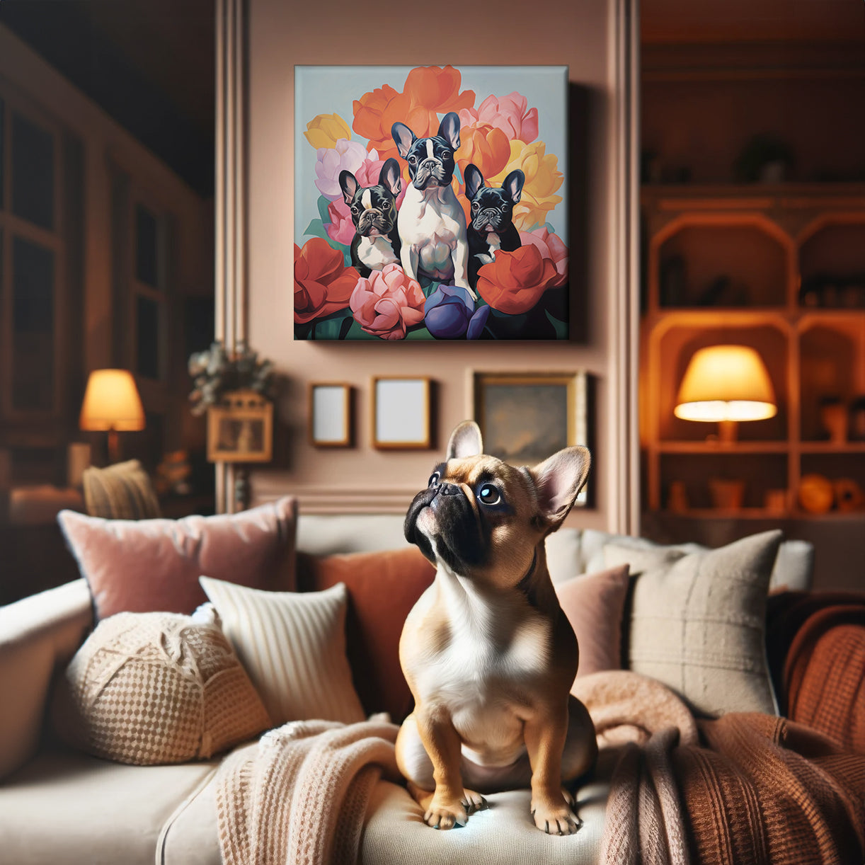 Adorn your home with our captivating French Bulldog canvas artworks, bringing life and personality to your modern interiors.
