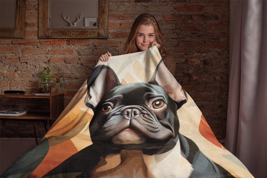 Cozy up with Frenchie adorned Pillows, Throw Blankets, and Beach Towels. Artistry...