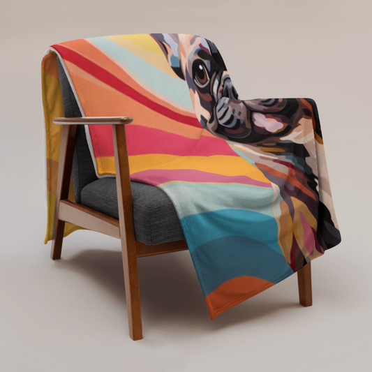 Immerse yourself in the world of French Bulldogs with our artistically adorned Throw Blankets. Each blanket serves as a canvas showcasing a myriad of Frenchie expressions – from whimsical watercolors to colorful geometric styles. Beyond being a striking décor design element, these blankets offer the soft touch of silk, ensuring that every snuggle is both warm and visually enchanting. Whether as a vibrant statement piece or a cherished memento, revel in the soft silk touch, vibrant colors, and the undeniable charm of Frenchies that bring both warmth and artistry to your lounging moments.