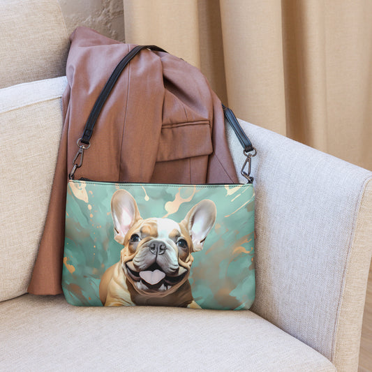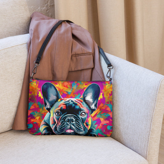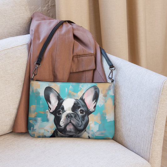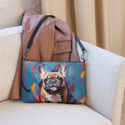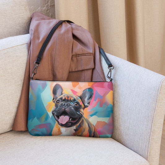 Step out in style with our French Bulldog Art Hand Bags. Merging a classic silhouette with the charming and fashionable world of Frenchies, these crossbody bags accentuate any look. Crafted from premium faux leather and adorned with unique Frenchie artworks, they're not just a fashion statement but an ode to our beloved companions. With dark gray hardware, removable straps, and a secure zip-top closure, these bags are as functional as they are fashionable, ensuring your essentials remain organized while wrapped in artistic elegance.