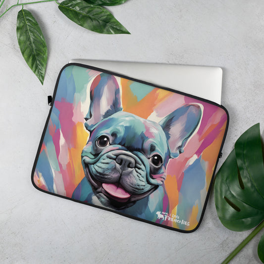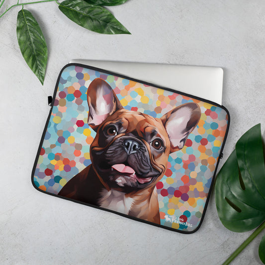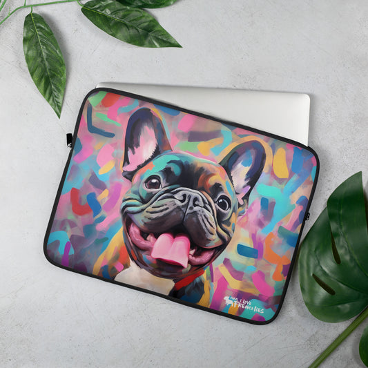 Showcase your love for Frenchies every time you tote your tech. Our Frenchie-inspired laptop sleeves envelop your device in protective elegance, bringing together utility and artistic charm. The heartwarming artistic expression of our cherished canine friends are seamlessly blended into each design. Nestled within plush faux fur lining and secured by a padded zipper, your laptop finds its cozy sanctuary. The water-resistant and scratch-proof exterior ensures that both your laptop and the endearing Frenchie art remain pristine. Elevate your laptop's style while ensuring its safety.