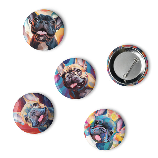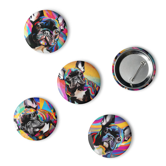Infuse a touch of French Bulldog charm into your everyday ensemble with our glossy pin buttons. This set of five offers a delightful assortment capturing the playful and endearing nature of Frenchies. Each pin boasts a UV-resistant coating, ensuring your favorite Frenchie moments shine brilliantly and endure without a scratch. Easy to attach, they're a stylish nod to your love for these iconic pups and a conversation starter for fellow Frenchie fanatics.