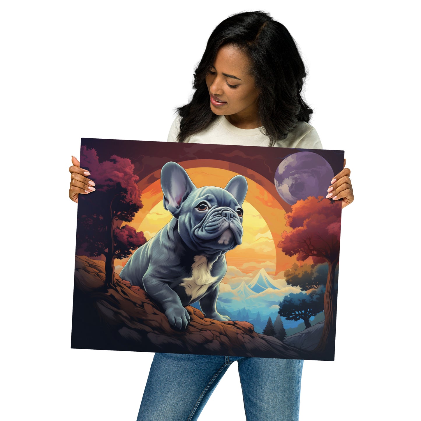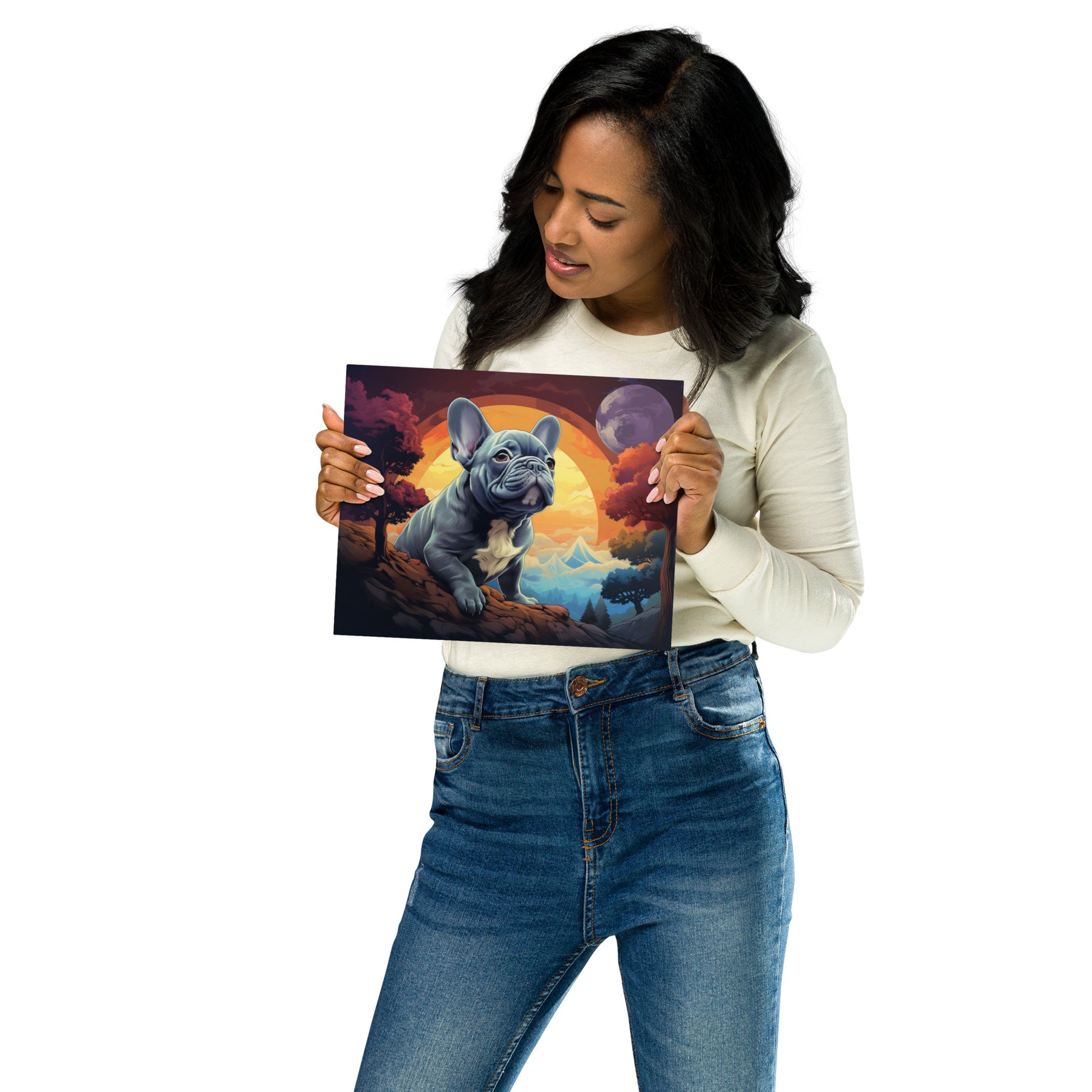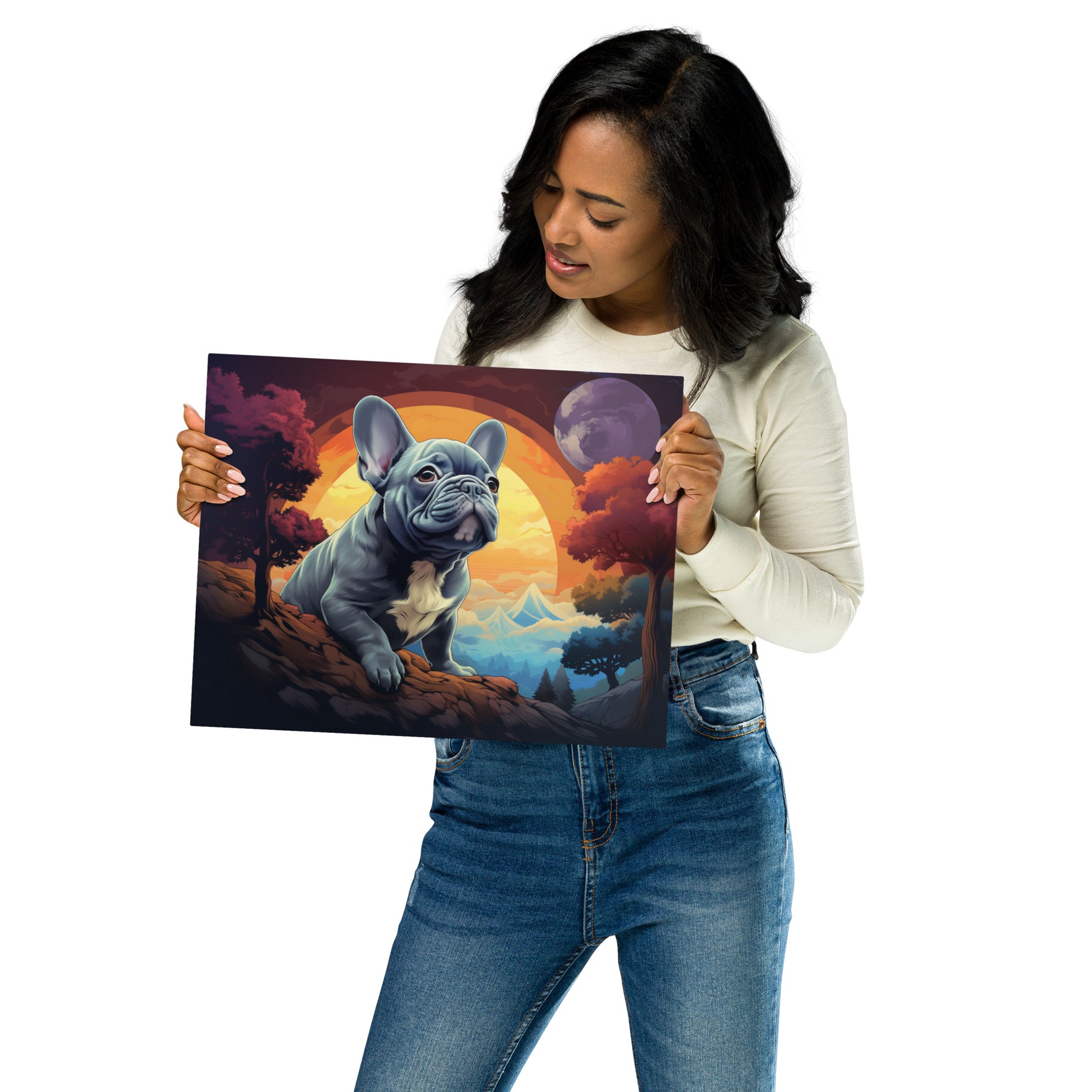 This metal print is a dimensional and high-quality piece of art that stands the test of time while remaining easy to clean and care for. The artwork looks luminescent against the wall and the metal base means it’ll last a long time.