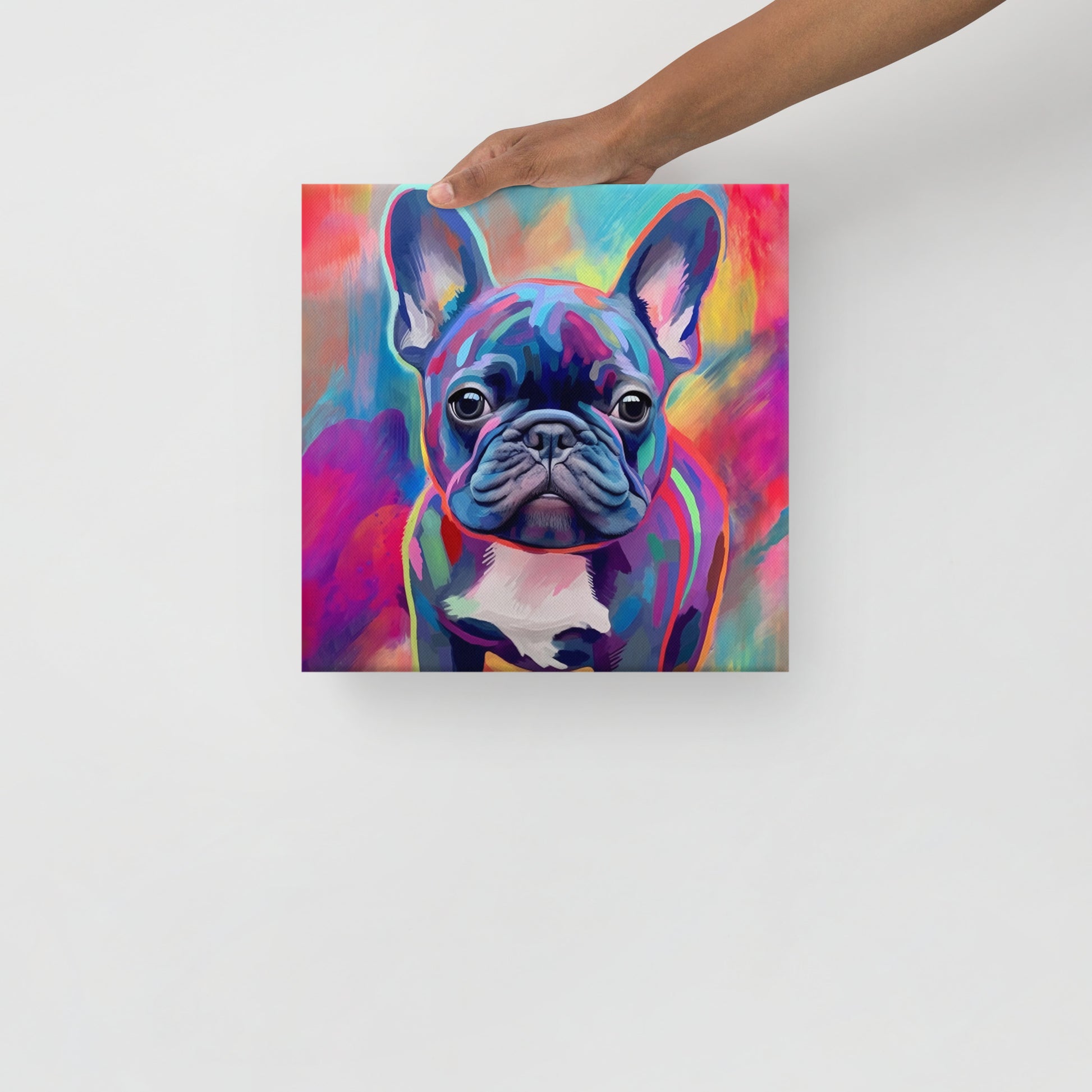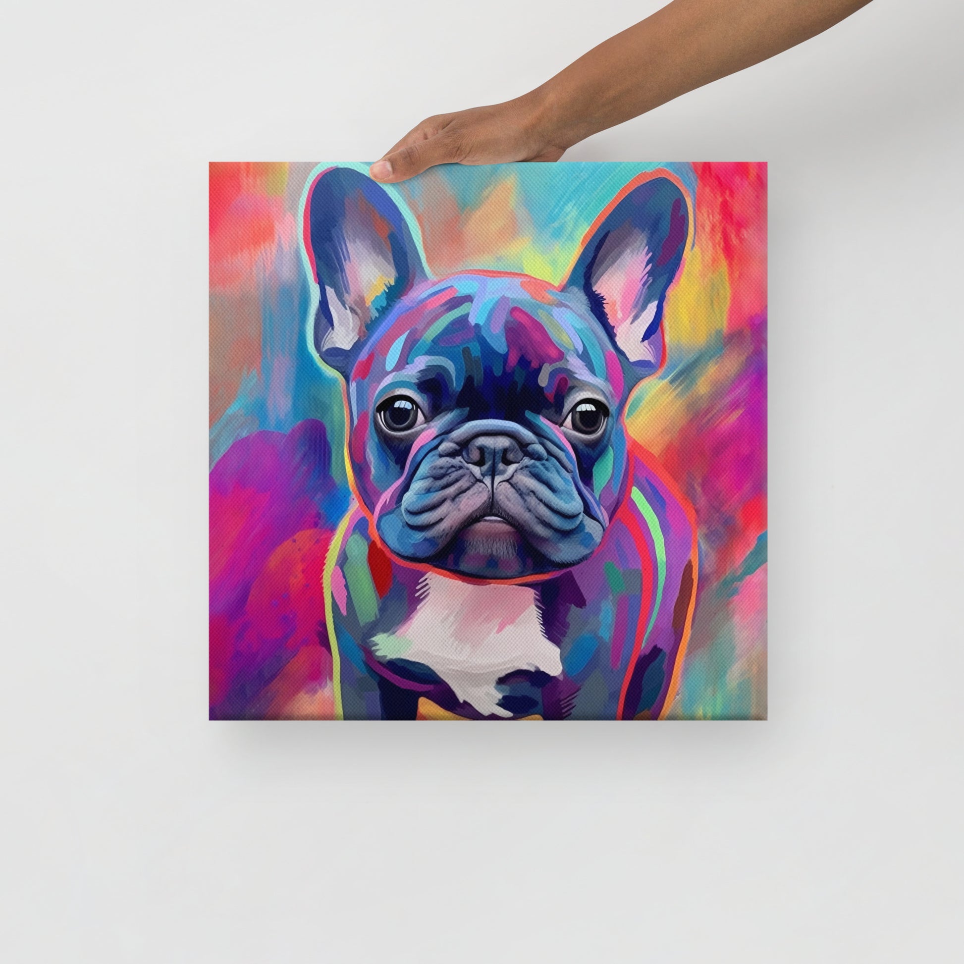 Your search ends here. "Bulldog's Dance with Doodles" canvas print showcases an adorable French Bulldog in a vibrant, enduring print that's designed to charm and captivate.
