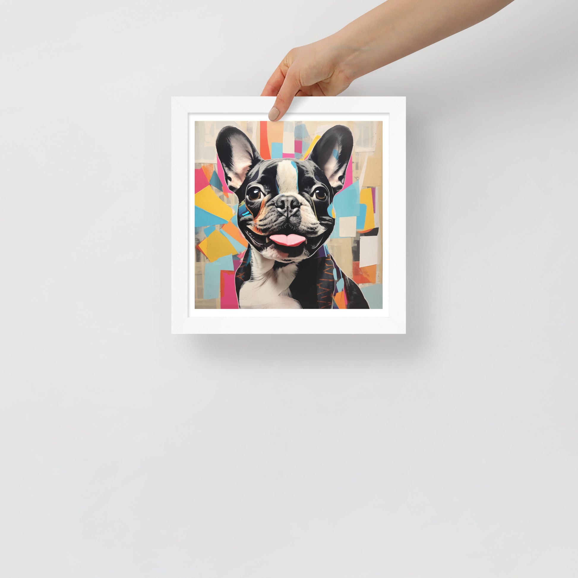 Introduce "Collage Canine" to your collection and let the spontaneous charm of this pied French Bulldog transform your home or office into a gallery of contemporary whimsy.