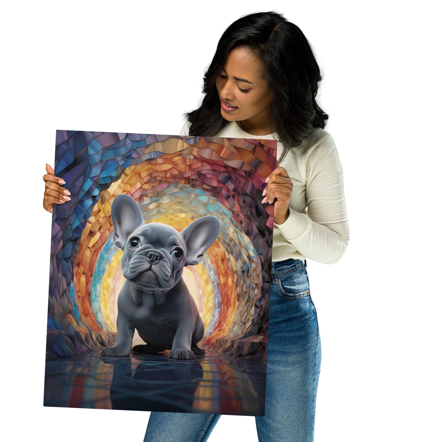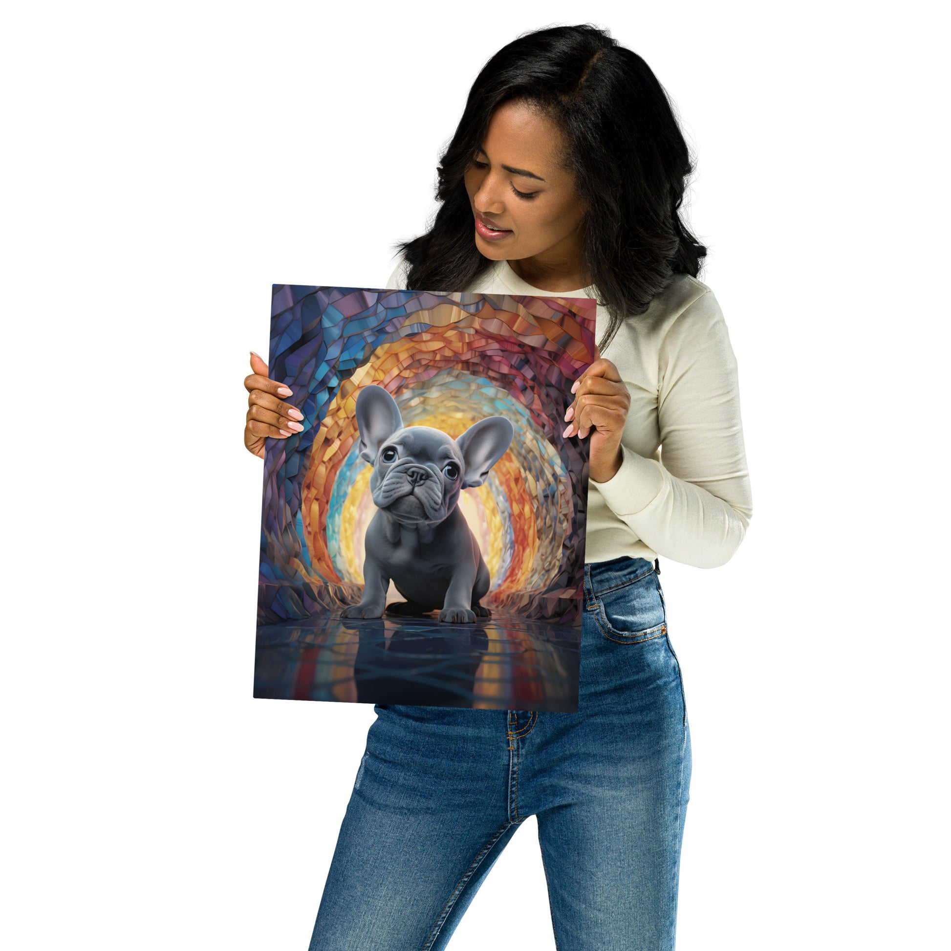 This metal print is a dimensional and high-quality piece of art that stands the test of time while remaining easy to clean and care for. The artwork looks luminescent against the wall and the metal base means it’ll last a long time.