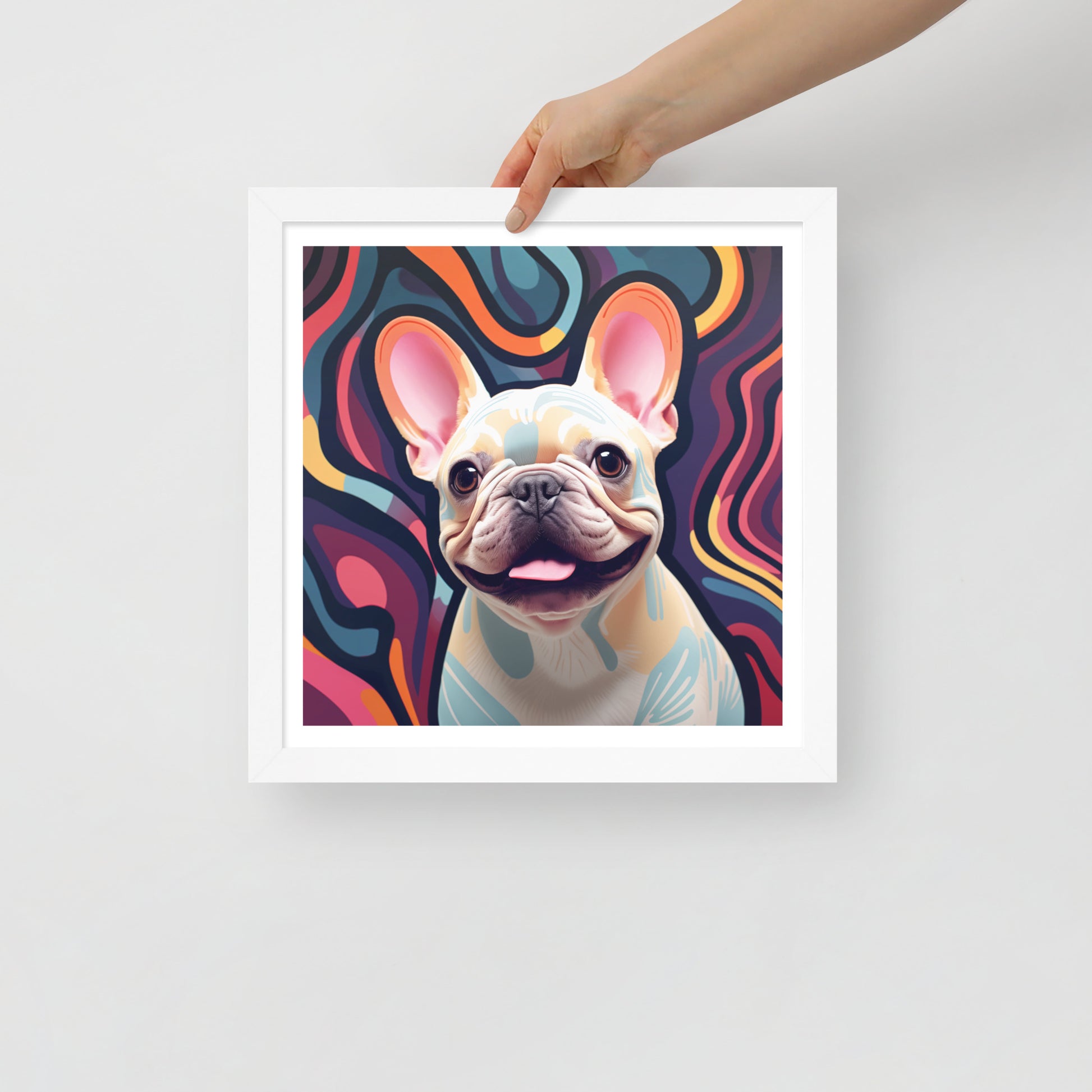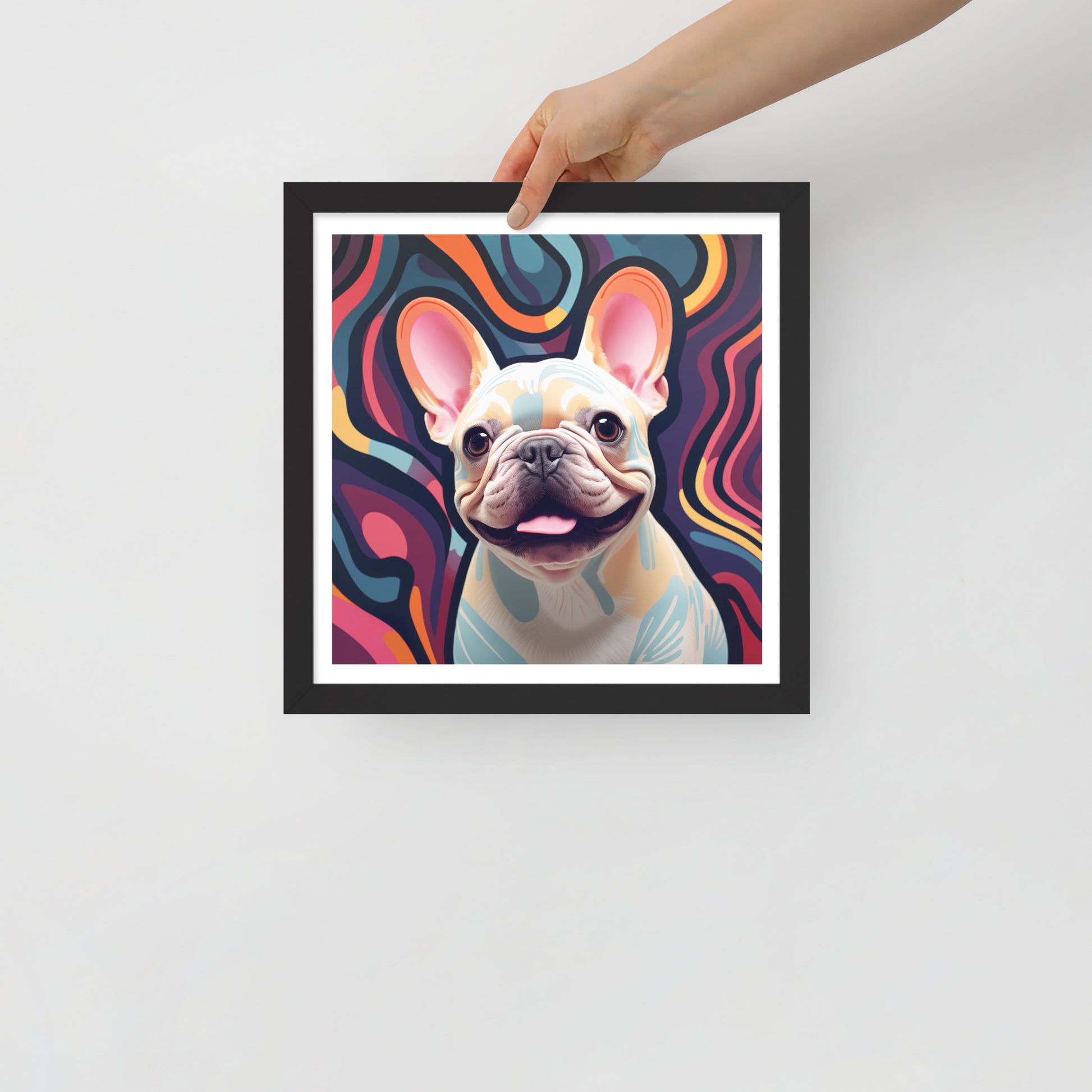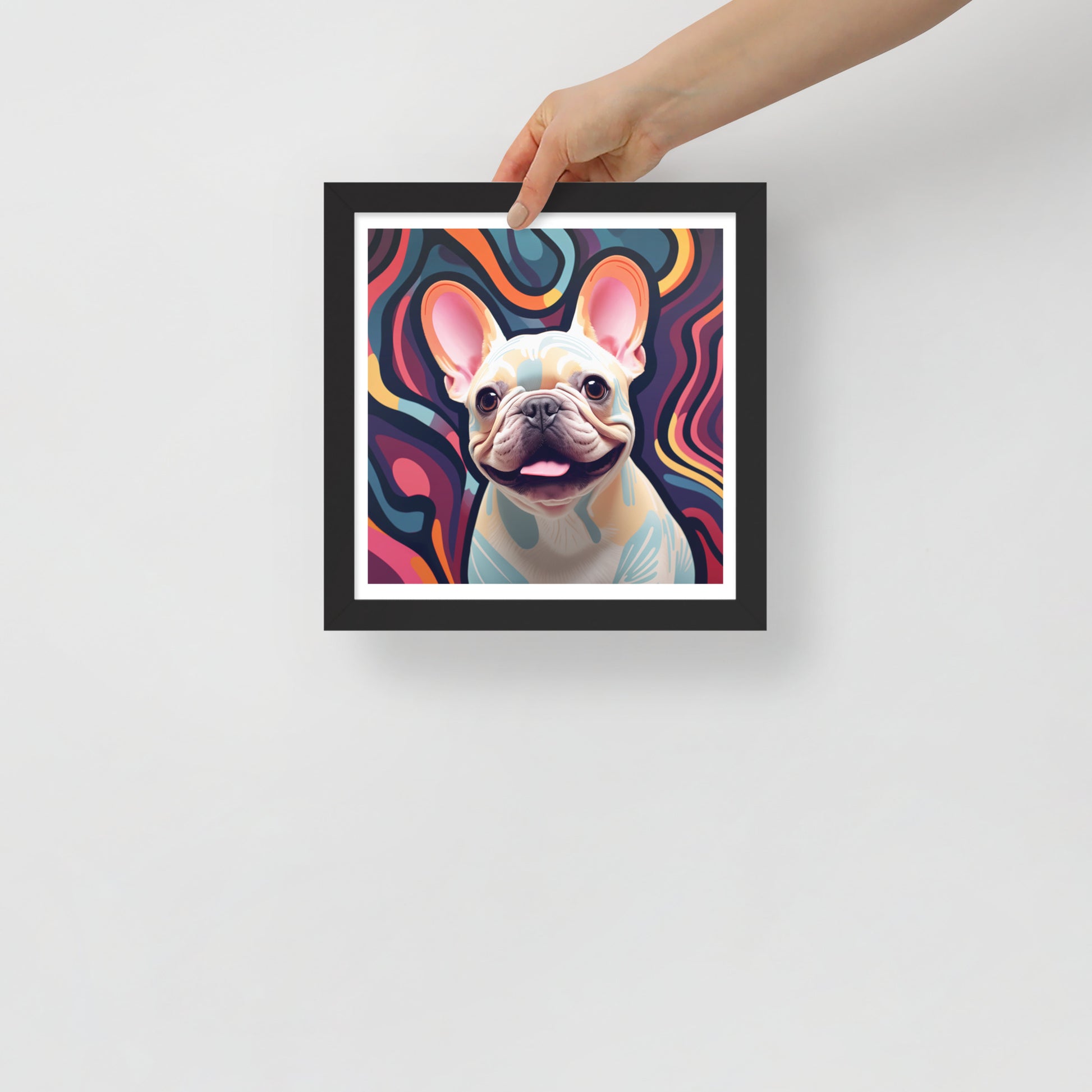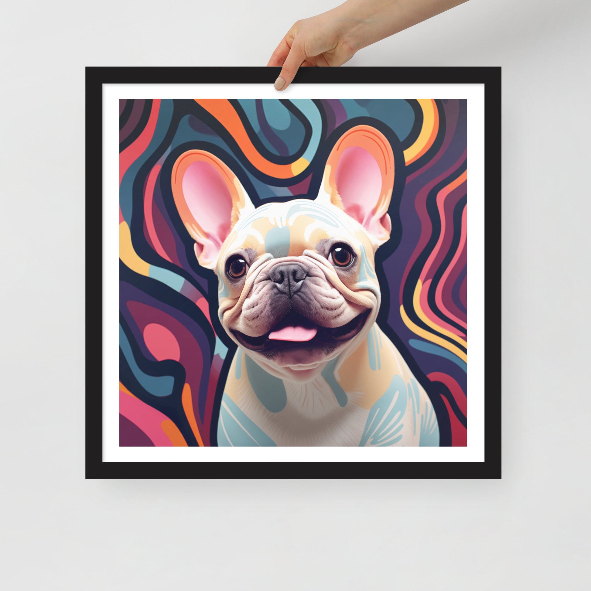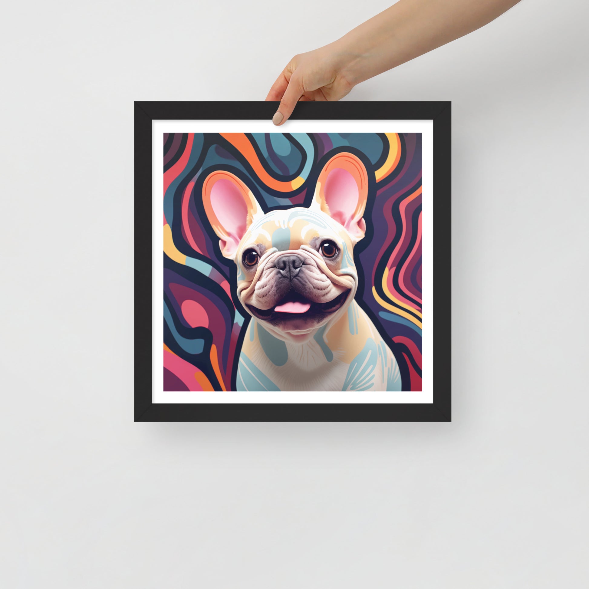 The calming cream hues of our French Bulldog are rendered in exquisite detail, inviting a sense of peace and contentment into your home. The backdrop's mesmerizing patterns in complementary pastel tones create a sense of movement, symbolizing the joy and energy that these lovable pups bring to our lives.