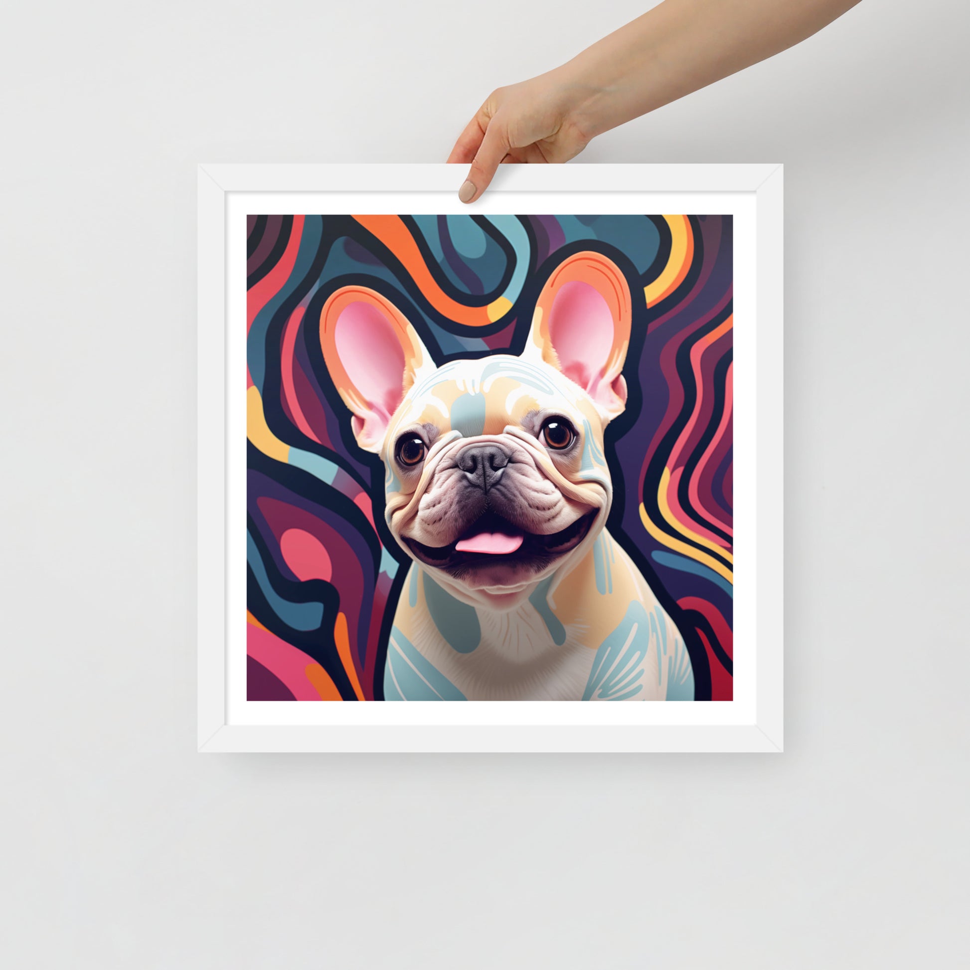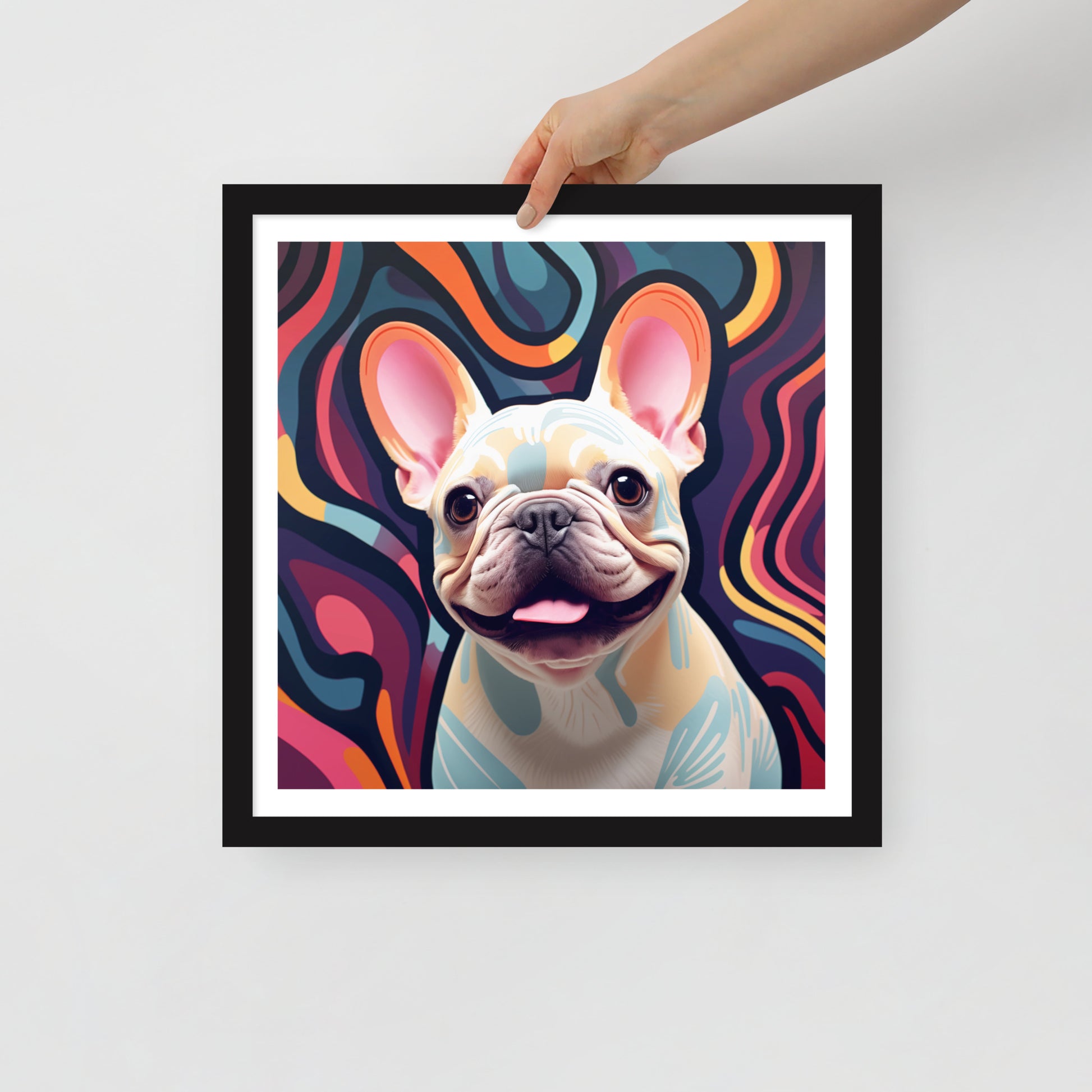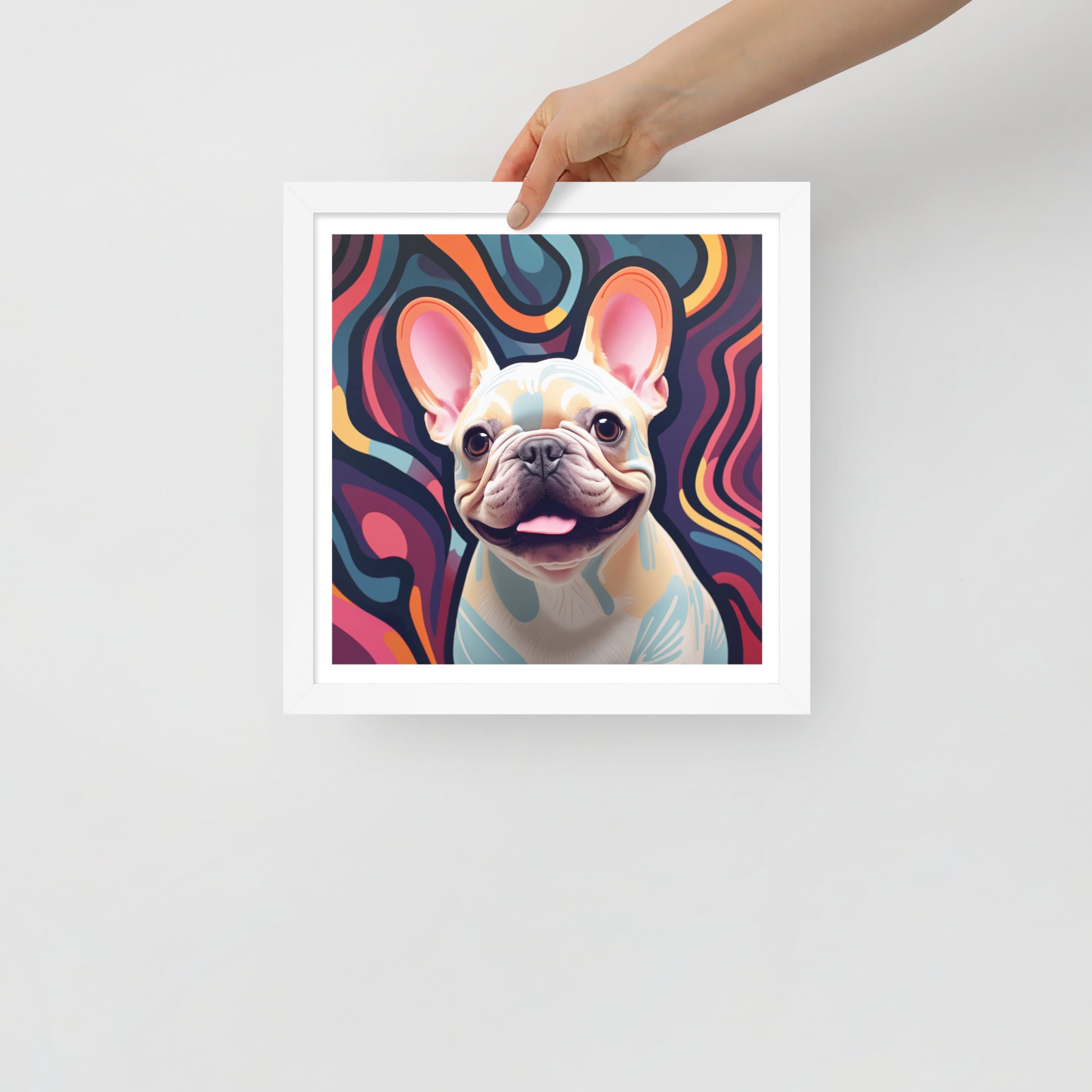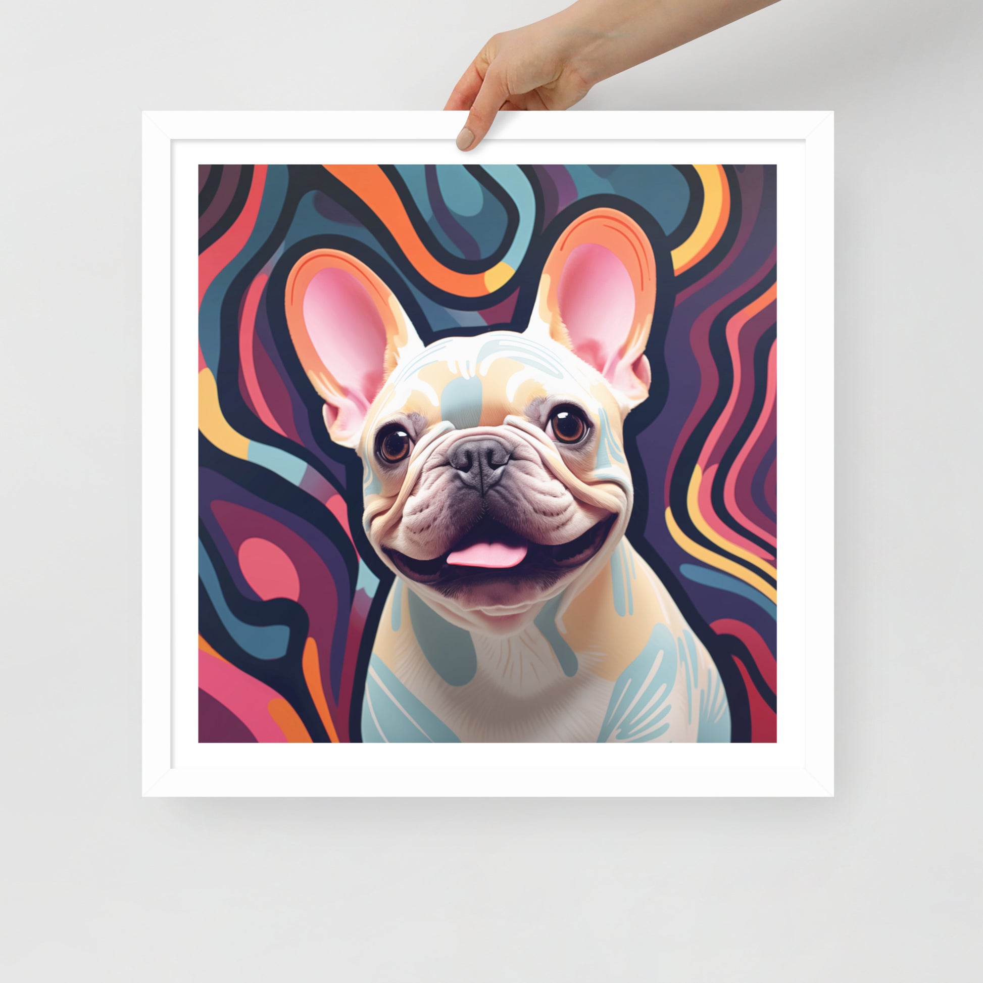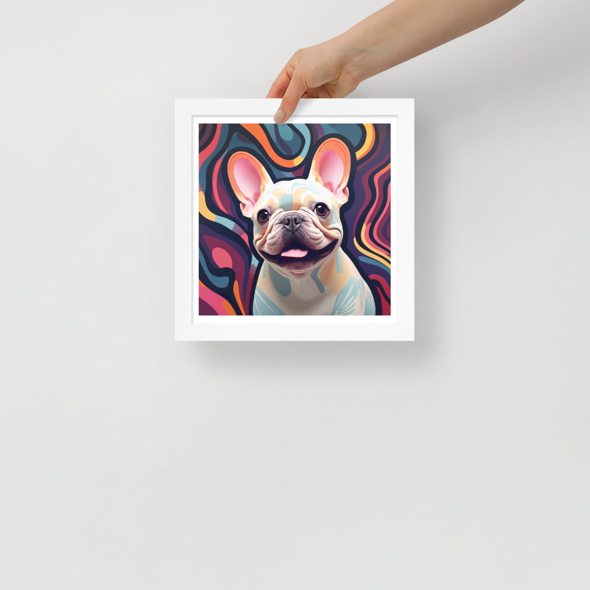 The calming cream hues of our French Bulldog are rendered in exquisite detail, inviting a sense of peace and contentment into your home. The backdrop's mesmerizing patterns in complementary pastel tones create a sense of movement, symbolizing the joy and energy that these lovable pups bring to our lives.