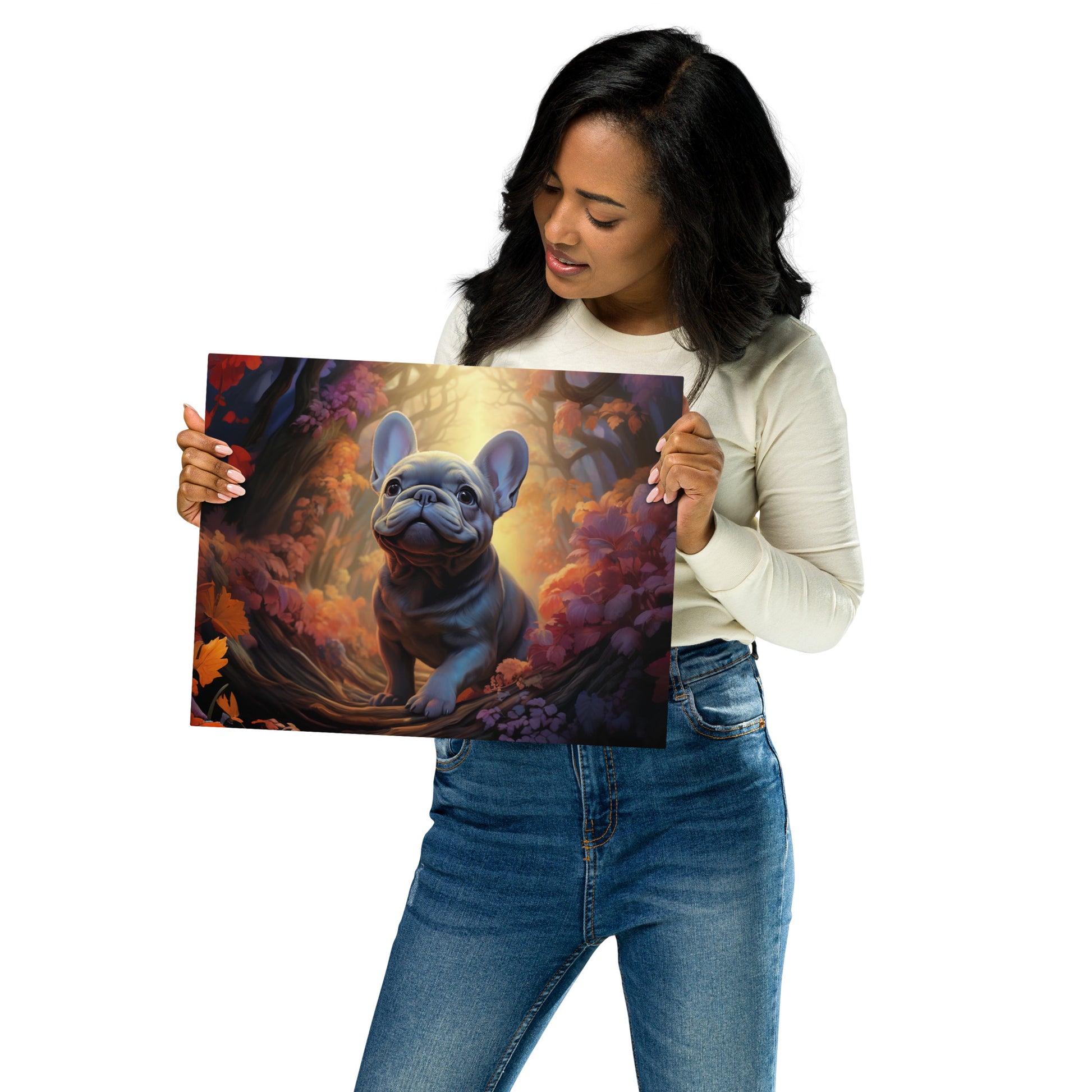 Fall Forest Frenchie Metal Print