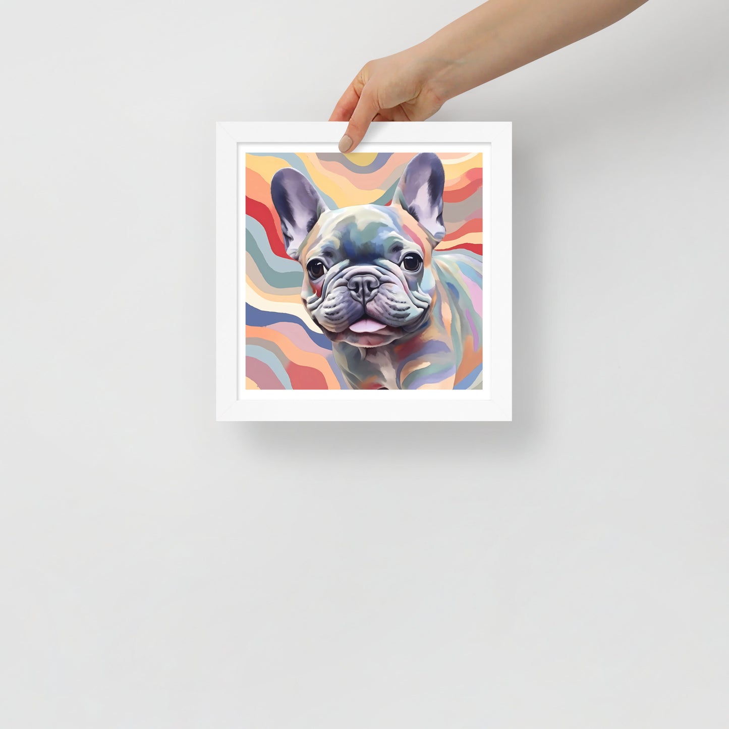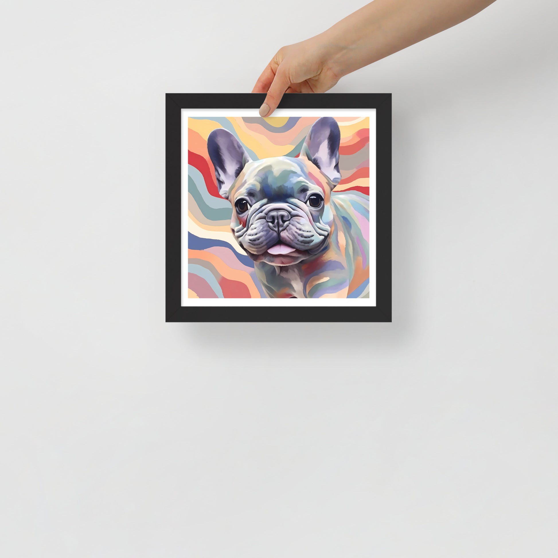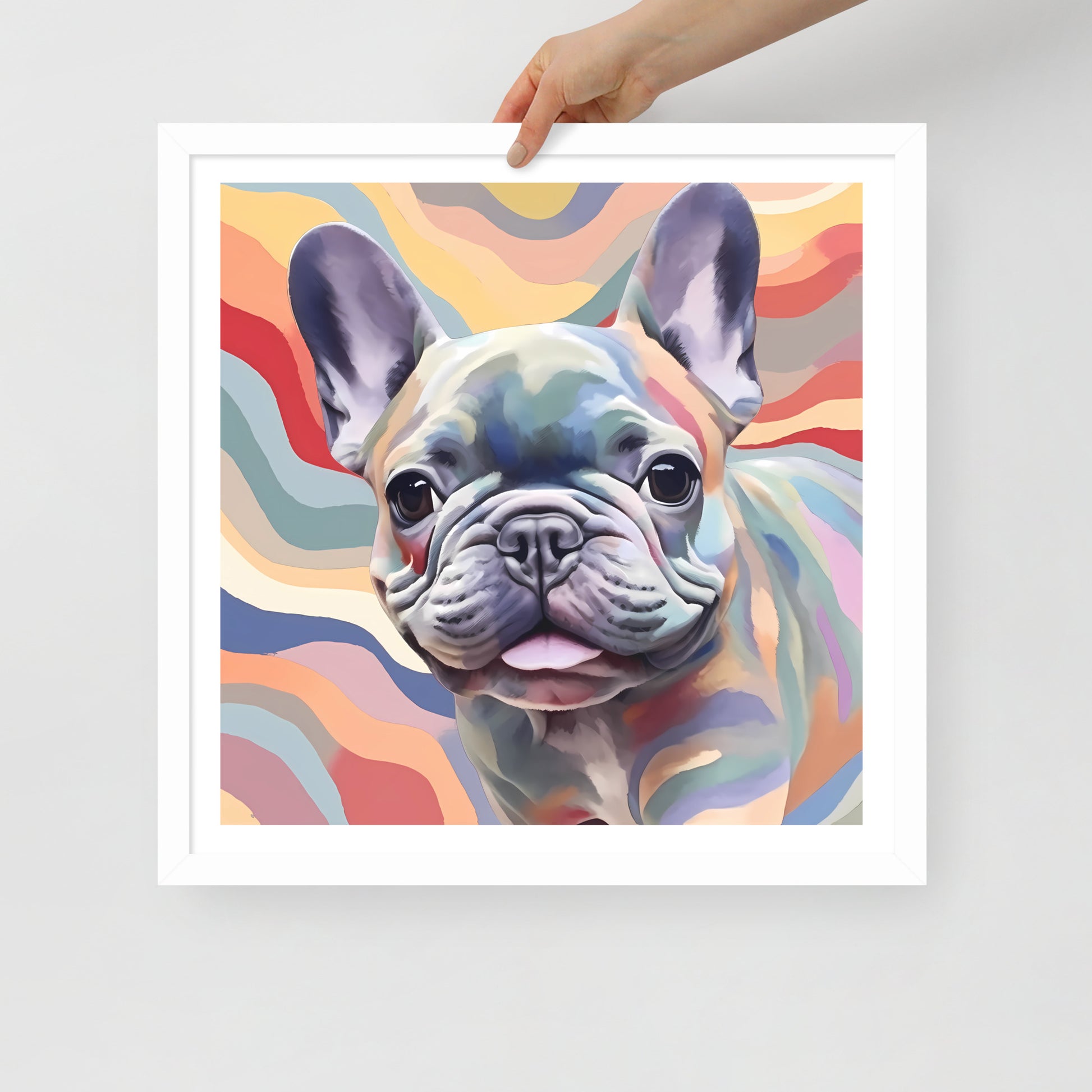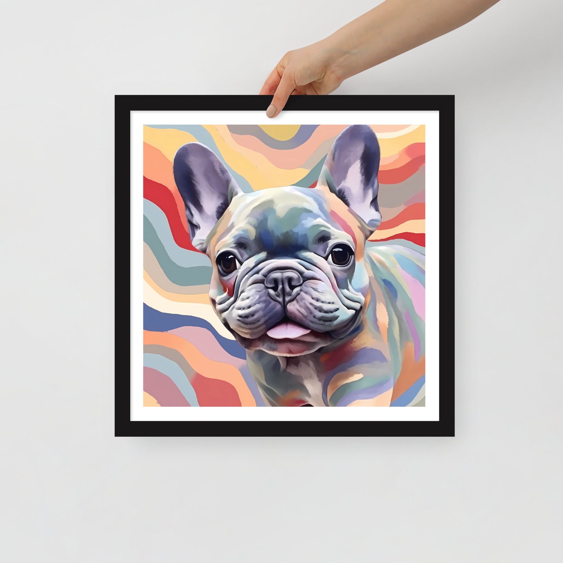 Elevate your space with the serene beauty of our "Lilac Pup Whirls" framed artwork. This exquisite piece captures the essence of a lilac French Bulldog, portrayed in soft, swirling pastels that invoke a sense of calm and happiness in every brushstroke.