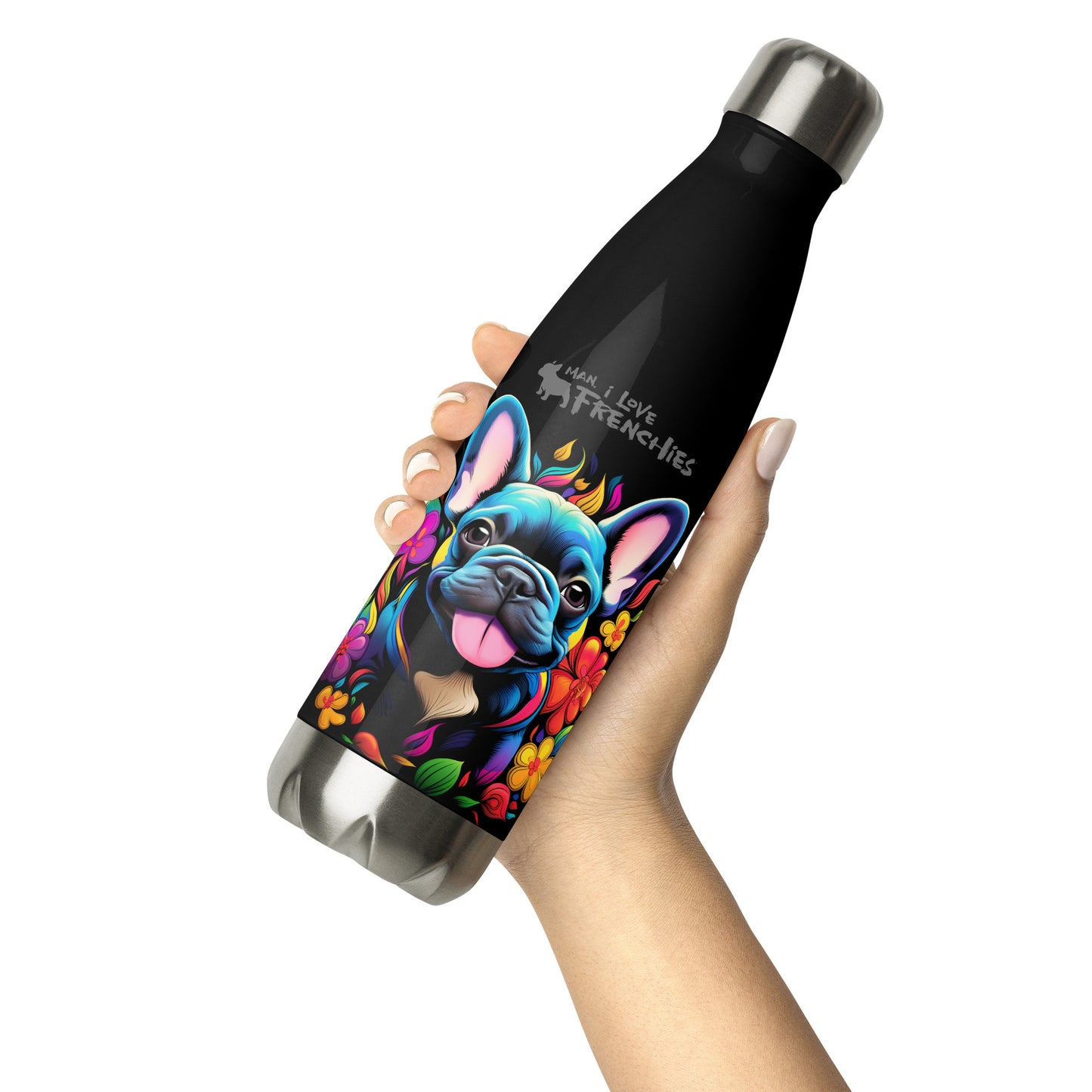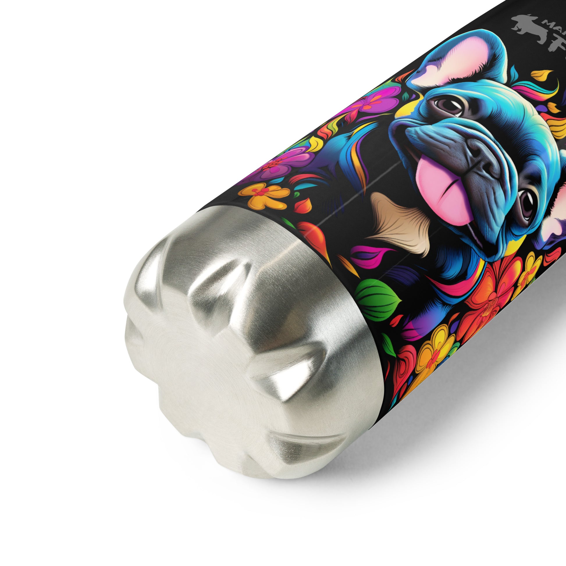Neon Floral Frenchie - Stainless Steel Water Bottle
