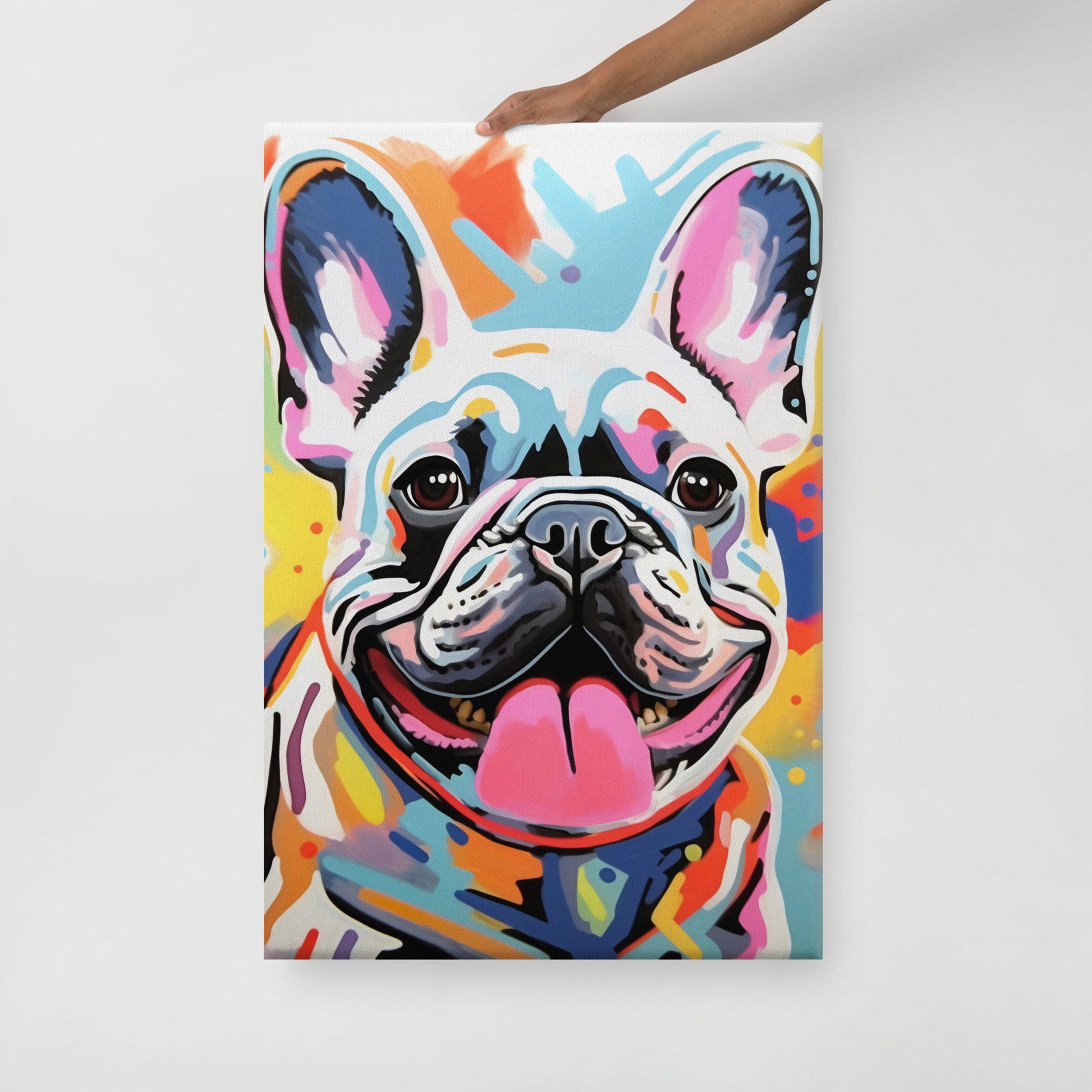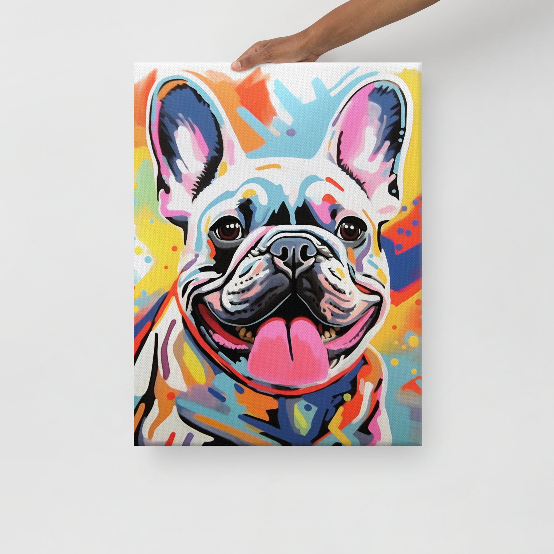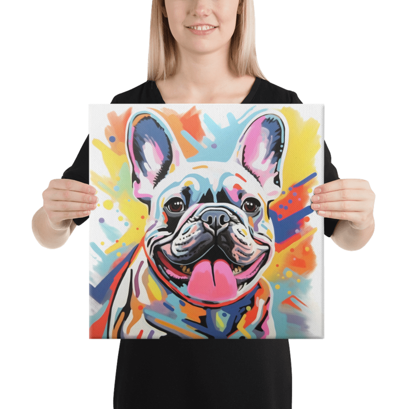 Each "Splash of Pup" print is lovingly created upon order, embodying our ethos of quality and responsible production. By choosing this canvas, you're not only embracing art that speaks to the heart but also supporting practices that care for our planet. Let this white Frenchie canvas print splash its way into your life, bringing with it a wave of color and a paw print of happiness.