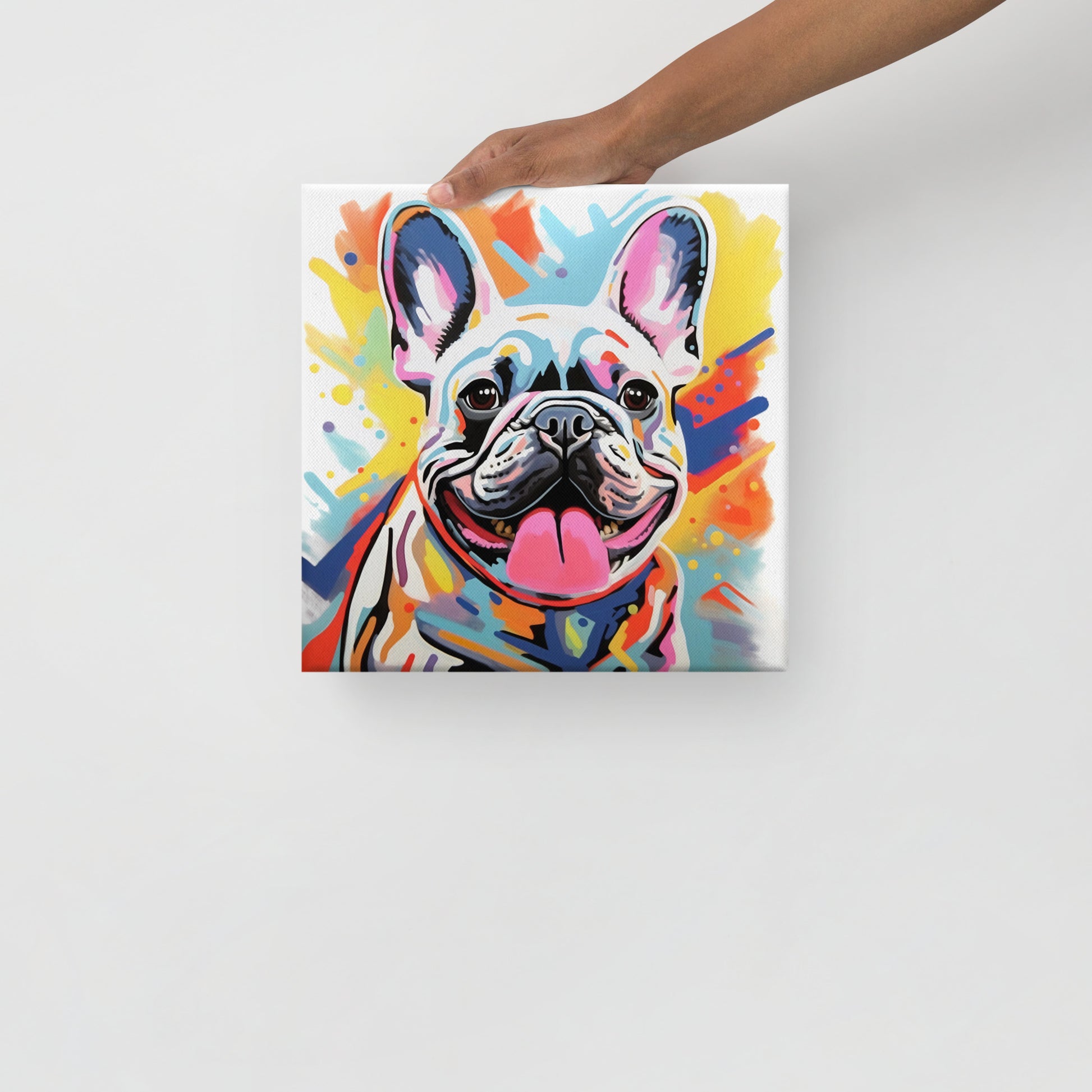 Introducing "Splash of Pup," a canvas print that brings a burst of vibrancy and a touch of whimsy to any room. This artwork features a white French Bulldog, each brushstroke accentuating its playful nature with an explosion of colorful splashes that bring the canvas to life.