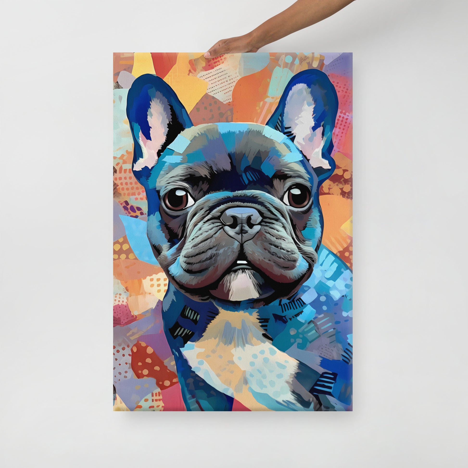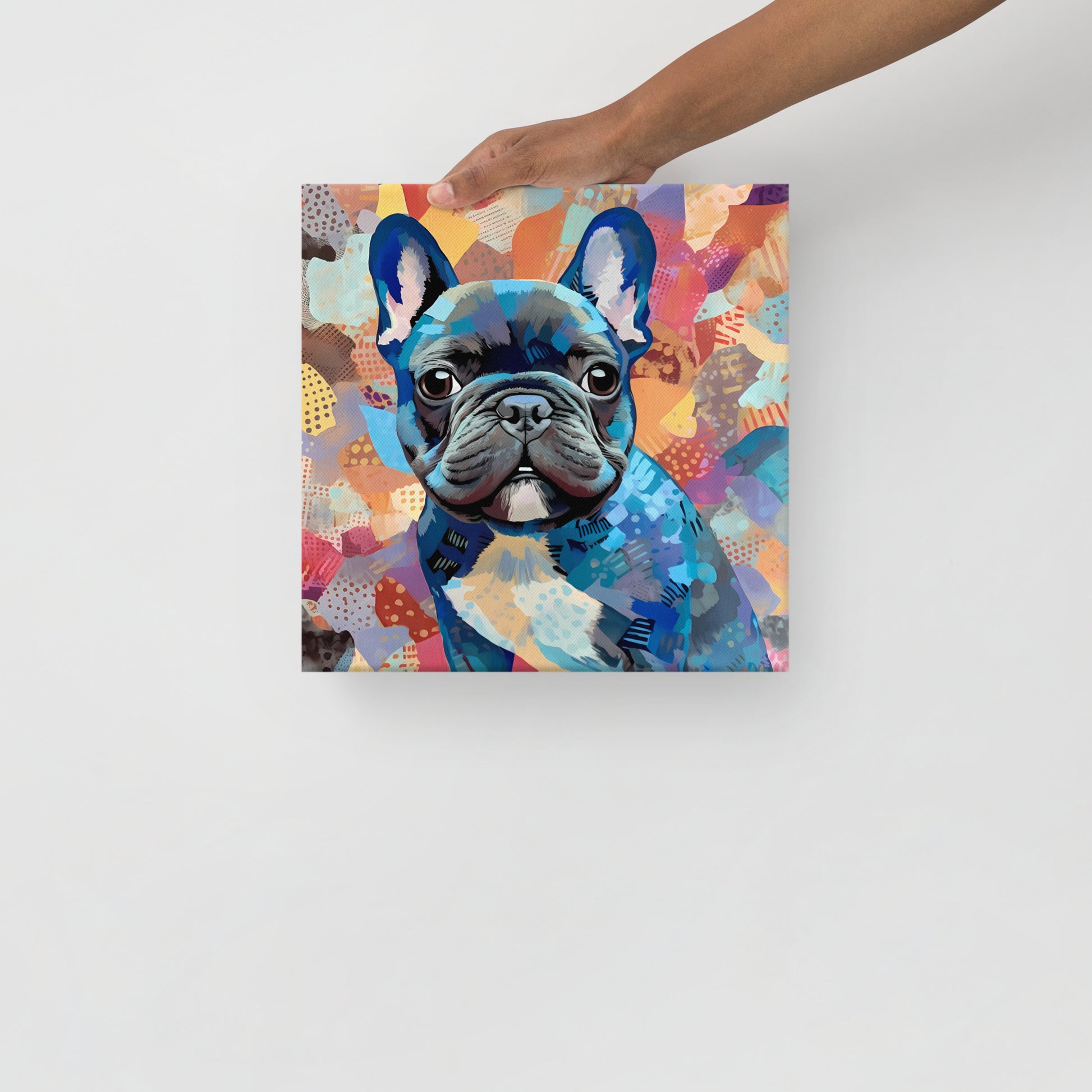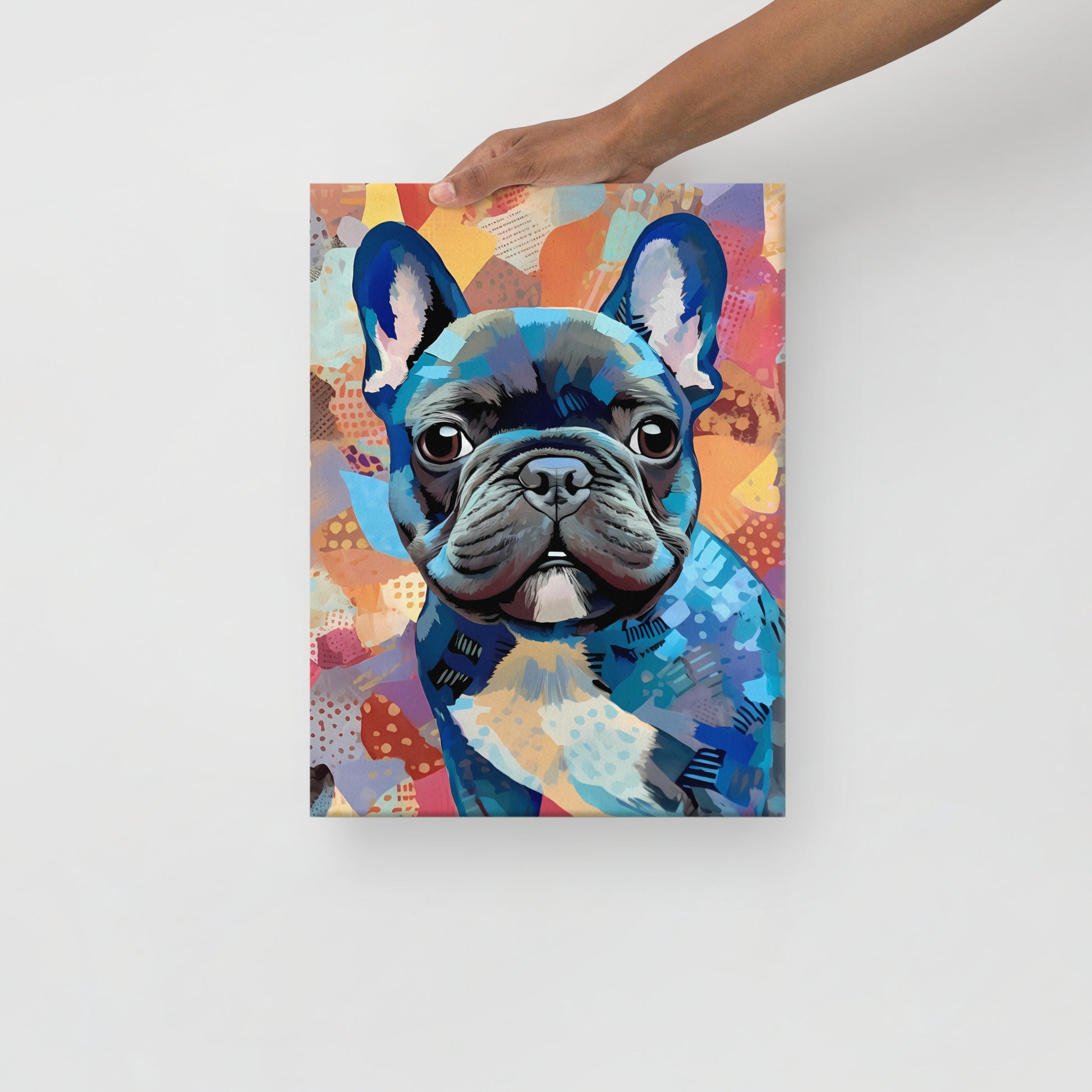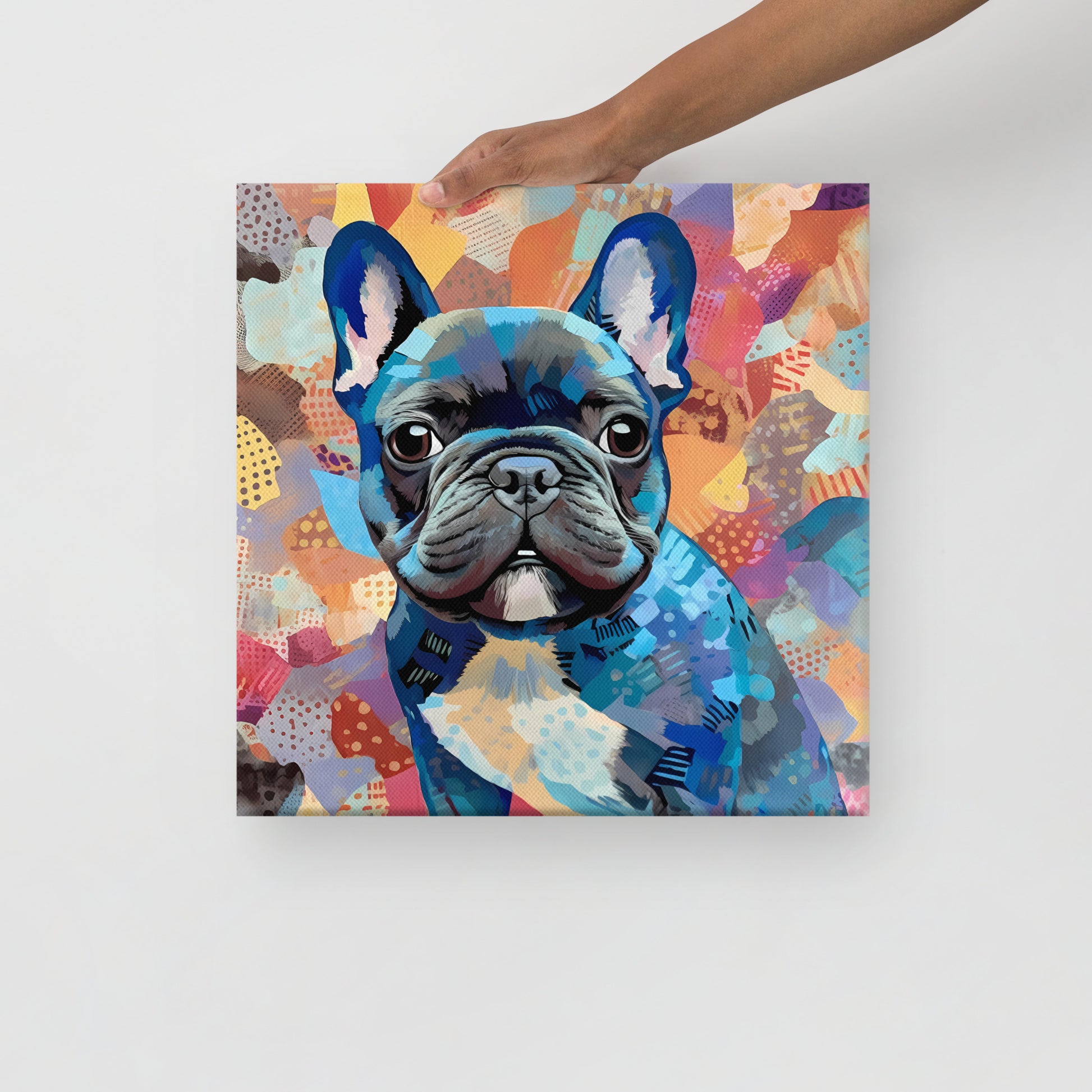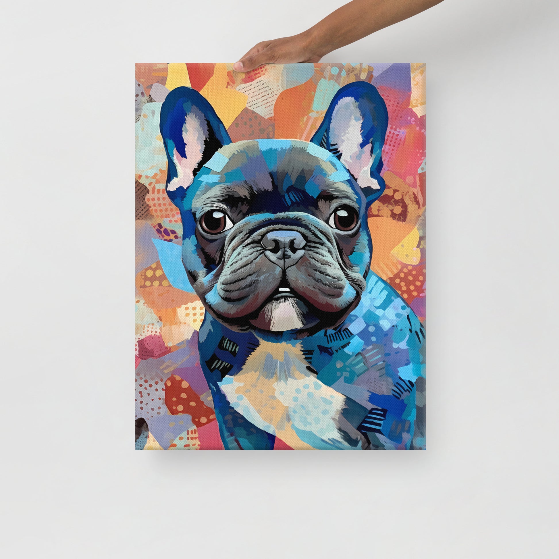 Your search ends here. "Bulldog's Dance with Doodles" canvas print showcases an adorable French Bulldog in a vibrant, enduring print that's designed to charm and captivate.